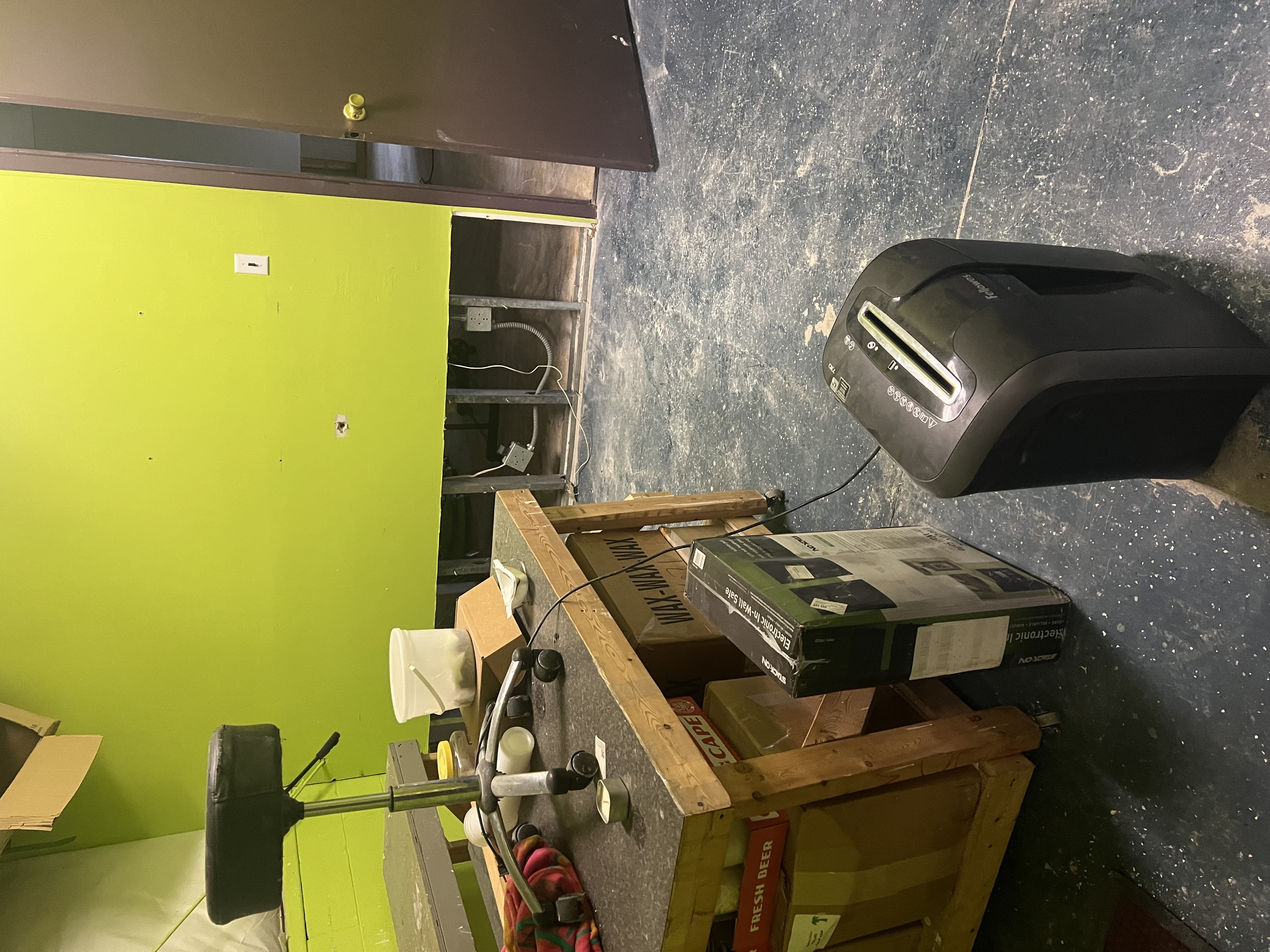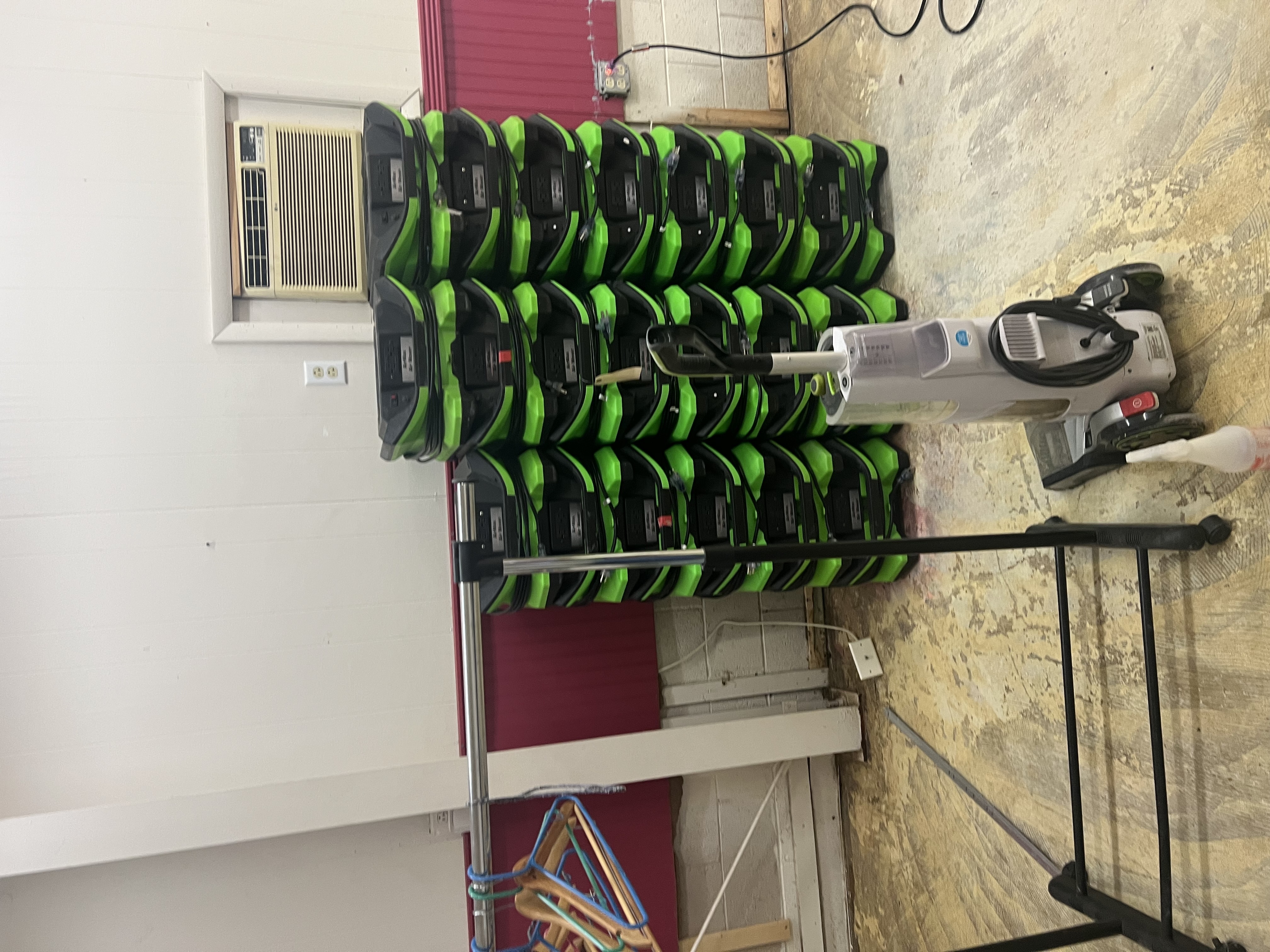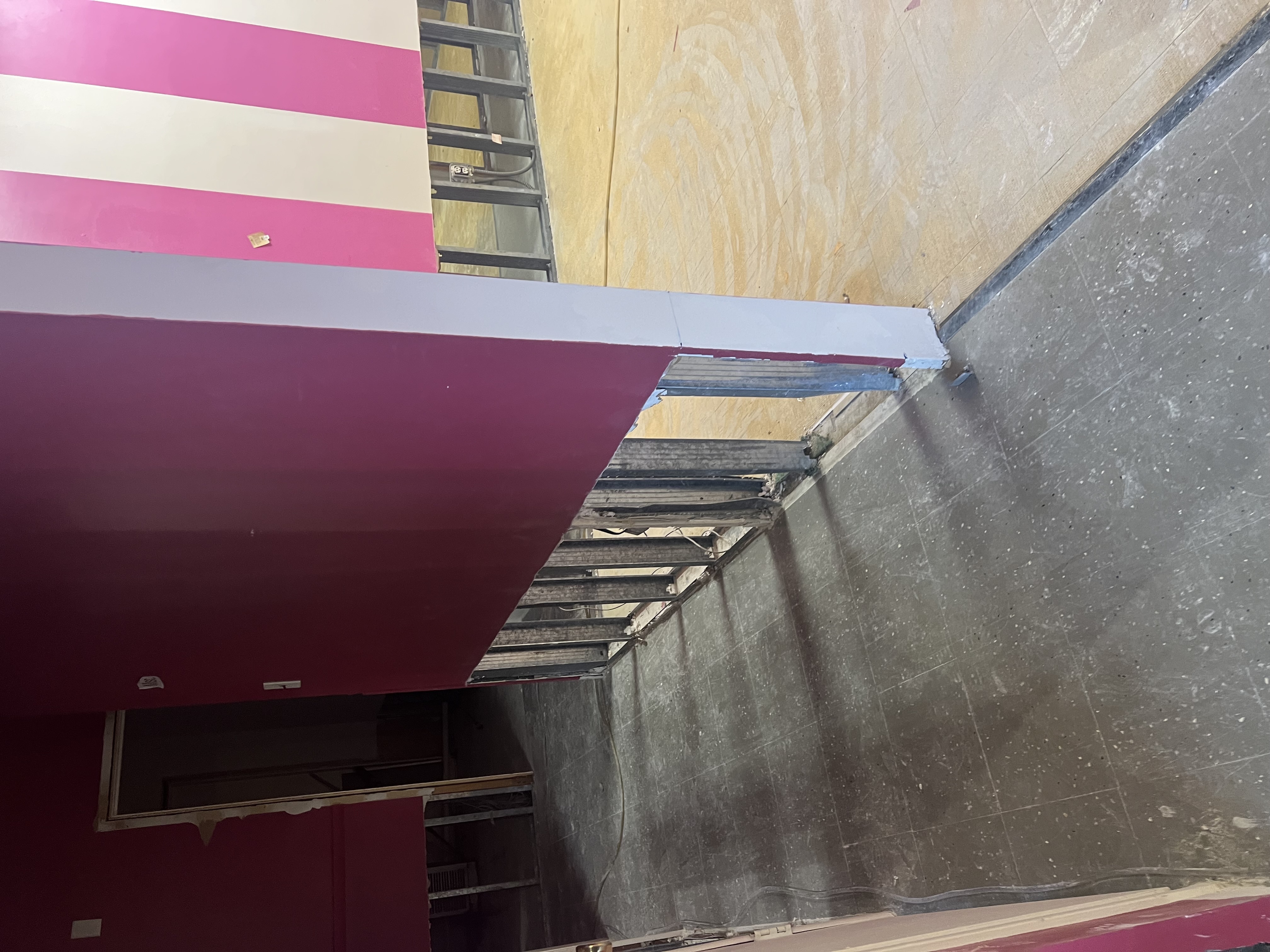 For the past week, we've been living through the first phase of the flood remediation: removing all the water-damaged flooring, drywall (fortunately they only had to take everything below about two feet), and insulation, treating the subfloor slab, wooden studs, and insides of the walls with antimicrobial products, and some really intensive ventilation and dehumidification.